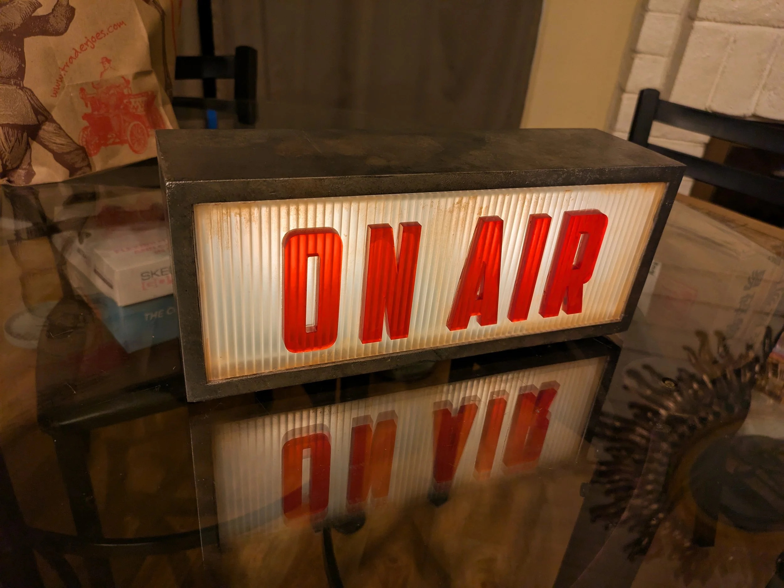 CUSTOM MADE ON AIR SIGN created by William Smith for the production. Unlike usual improv shows, Radio 47 uses actual props and sets to create the illusion you are in a radio station of the late 1940s.